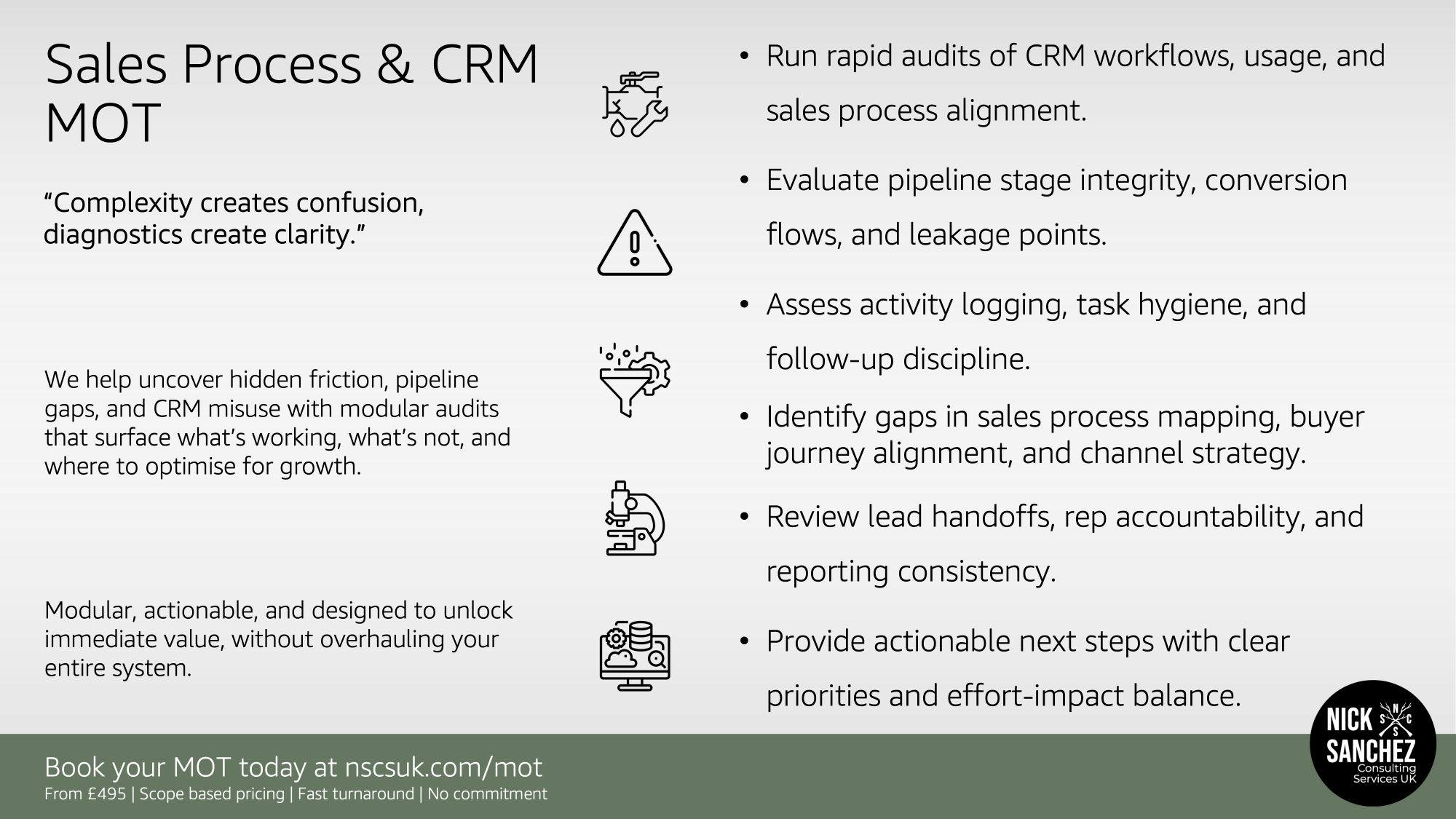 Book your Sales Process & CRM MOT, starting from just £495.